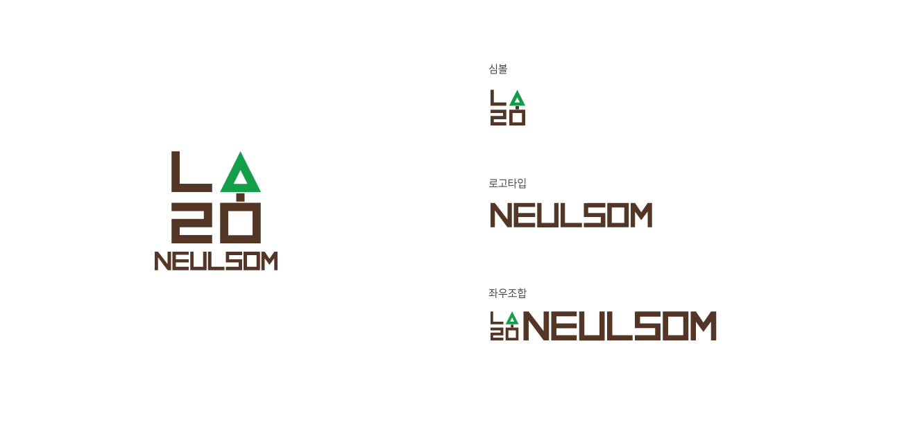 늘솜의 한글자음을 조합하여 형태를 만들고 ‘ㅅ’과 ‘ㅗ’ ‘ㅁ’으로 한 그루의 나무를 표현하였습니다.