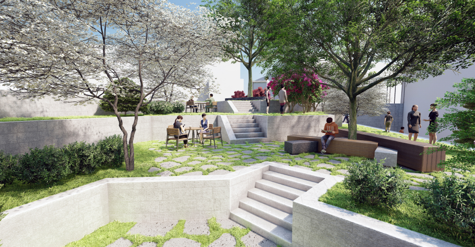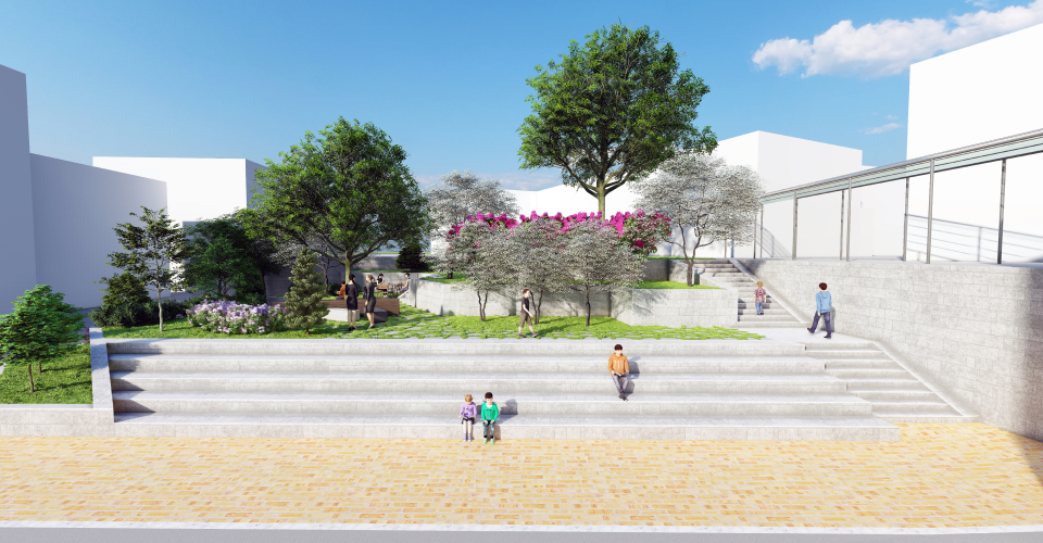 학교 내 그린스마트스쿨 조성사업에 따른 재학생 및 교직원에게 휴식 및 녹음 공간을 제공하고 동시에 외부 학습공간으로 조성